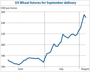 Με την ανακοίνωση του εμπάργκο, στις εξαγωγές σιτηρών, αυξήθηκαν σημαντικά οι τιμές των σιτηρών. Είναι χαρακτηριστικό ότι η τιμή των futures (συμβόλαια μελλοντικής εκπλήρωσης) εκτινάχτηκαν από περ. 180 δολλάρια τον τόννο, που ήταν στο τέλος Ιουνίου, στο επίπεδο των 260 Δολλ. ΗΠΑ ανά τόννο.