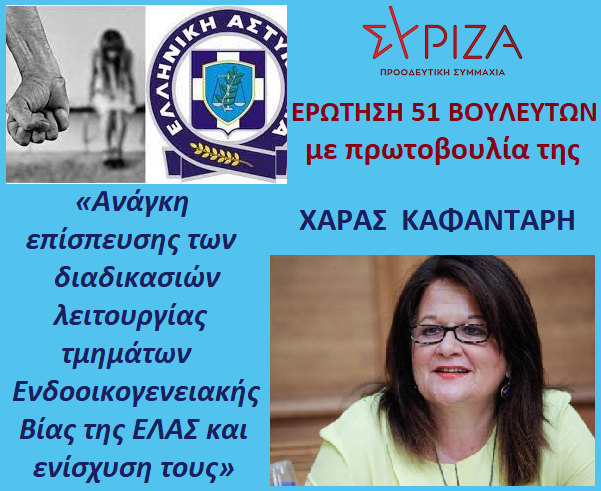 ΘΕΜΑ: Ανάγκη επίσπευσης των διαδικασιών λειτουργίας τμημάτων Ενδοοικογενειακής Βίας της ΕΛΑΣ και ενίσχυση τους