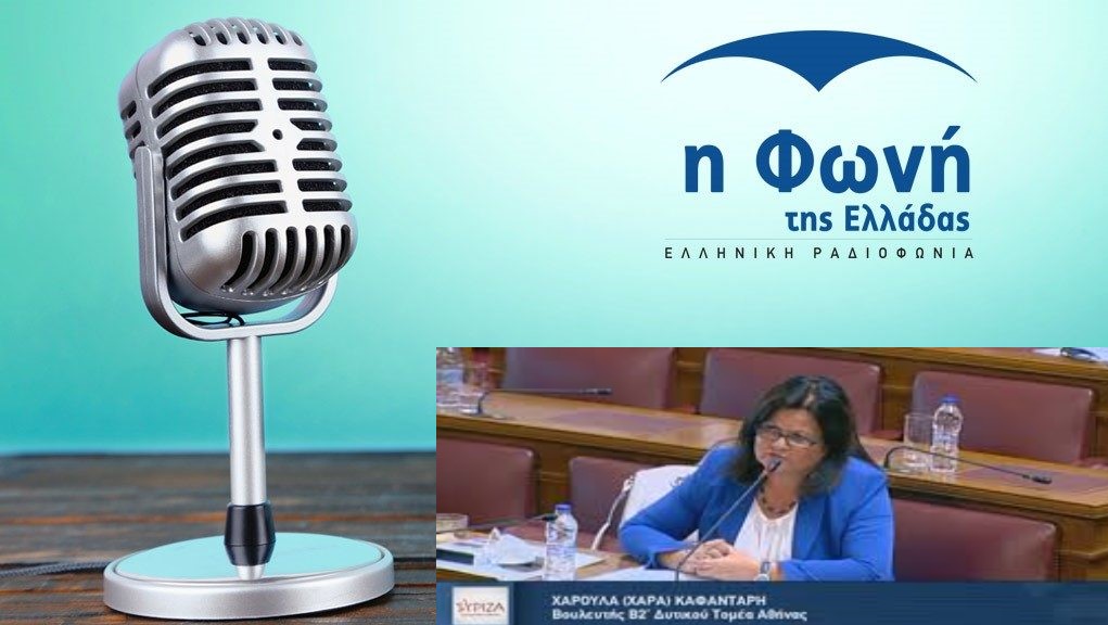 H Χαρά Καφαντάρη  Βουλευτής Δυτ. Αθήνας ΣΥΡΙΖΑ ΠΣ, Αναπληρώτρια Τομεάρχης Πολιτικής Προστασίας Κ.Ο ΣΥΡΙΖΑ και Αντιπρόεδρος της Ειδικής Μόνιμης Επιτροπής Προστασίας Περιβάλλοντος της Βουλής, , σήμερα, στις 01.02.2022, στον ραδιοφωνικό σταθμό « H Φωνή της Ελλάδας» και στην εκπομπή «Η ΕΛΛΑΔΑ ΣΤΟΝ ΚΟΣΜΟ», σχολίασε την επικαιρότητα και μεταξύ άλλων ανέφερε: