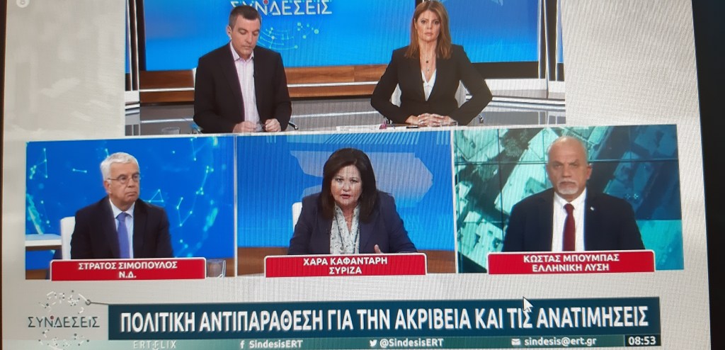 H Χαρά Καφαντάρη, Υποψήφια Βουλευτής Δυτ. Αθήνας ΣΥΡΙΖΑ – Π.Σ., Αναπληρώτρια Τομεάρχης Πολιτικής Προστασίας Κ.Ο, στις 10.05.2023, στην ΕΡΤ και στην εκπομπή «ΣΥΝΔΕΣΕΙΣ», σχολίασε την επικαιρότητα και μεταξύ άλλων ανέφερε: